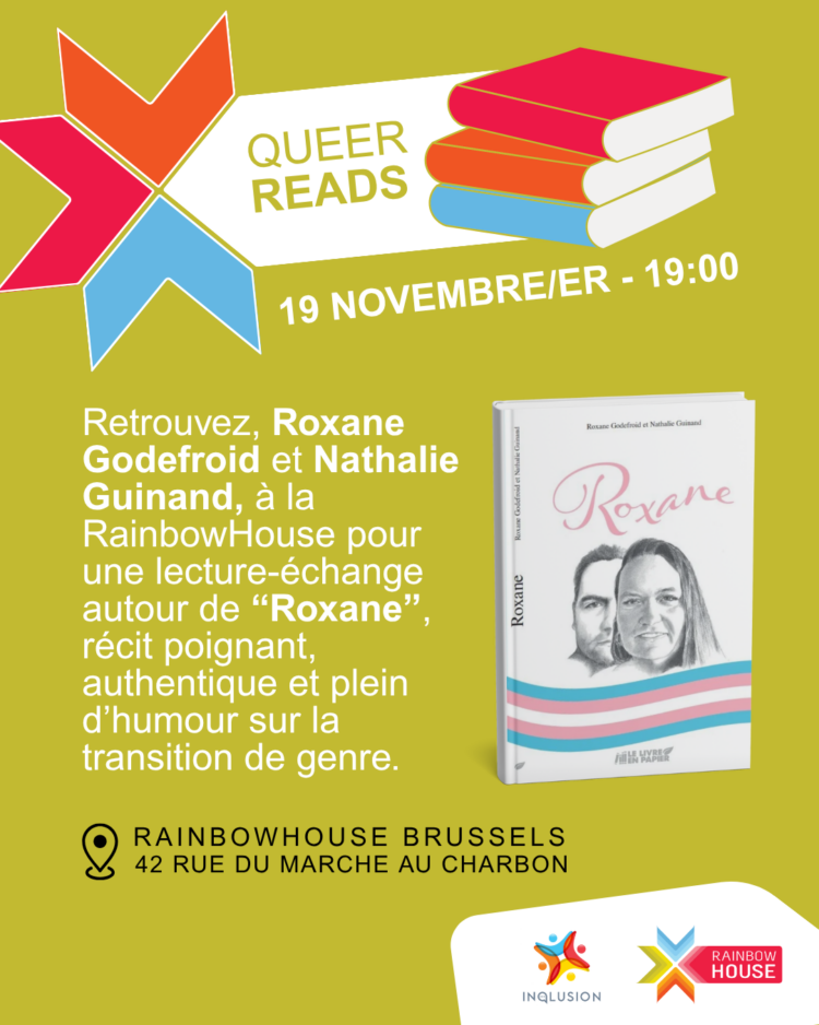La RainbowHouse Brussels accueille ce 19 novembre 2025 à 19 :00 dans le cadre de Queer Reads les autrices : Roxane Godefroid et Nathalie Guimand.