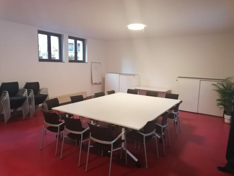 Verschillende opstellingen zijn mogelijk (conferentie, seminarie). De sleutels moeten vóór de huur worden opgehaald via een sleutelkluis.