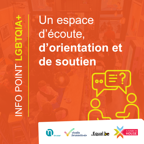 Chaque samedi de 14 h à 18 h, une équipe de volontaires formé·es est là pour t’accueillir dans un cadre bienveillant et confidentiel. Que tu aies besoin de soutien, d’informations ou d’être orienté·e vers des associations compétentes (santé mentale et sexuelle, transidentité et identité de genre, jeunesse, discriminiation, familles arc-en-ciel, vie communautaire, culture, etc.), l’Info Point LGBTQIA+ est là pour toi.